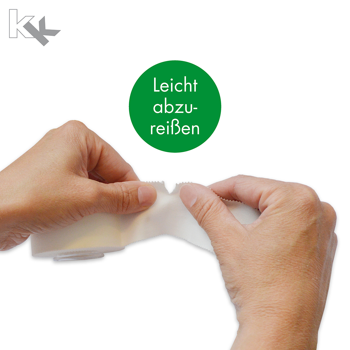 Gewickelt ist das Tape auf eine weiße Kunststoffhülse mit ergonomisch geformten Kanten, so dass man sich beim Tapen nicht verletzt.