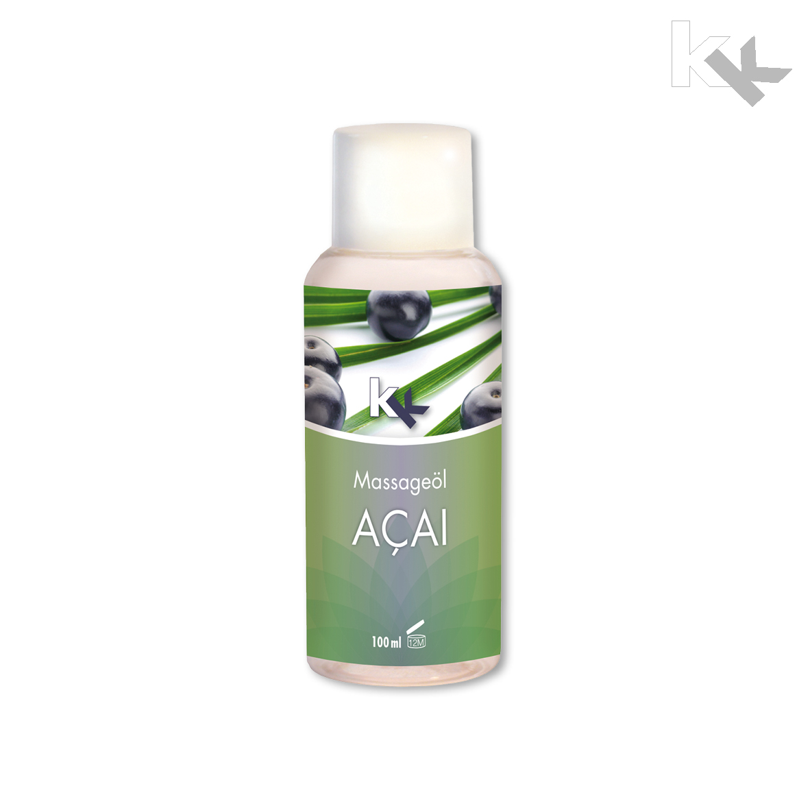 Das Massageöl Açai ist ein sehr hochwertiges Massagemittel. Es ist besonders ergiebig, bleibt lange auf der Haut und gibt eine gute Griffsicherheit bei der intensiven Massage. Ein belebender, frischer Duft wird zusätzlich während der Massage verströmt.