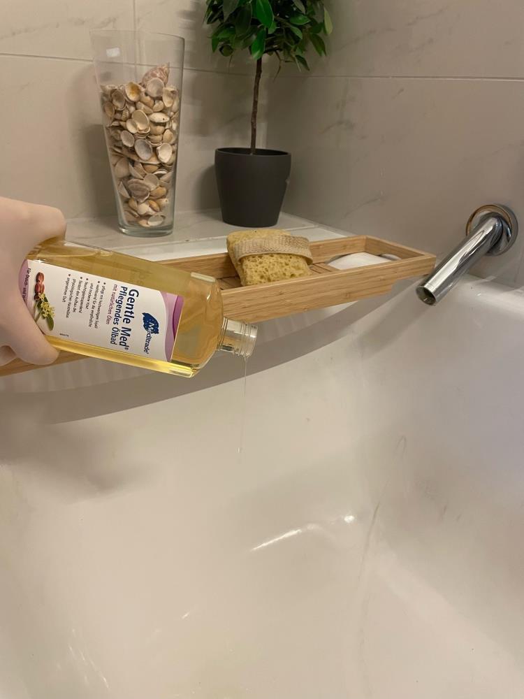 Die Anwendung des Meditrade Gentle med Ölbads ist einfach und unkompliziert. Einfach eine angemessene Menge des Ölbads dem Badewasser hinzufügen und das warme Bad genießen. Das Öl löst sich schnell im Wasser auf und bildet einen zarten Pflegefilm auf der Haut, der die Feuchtigkeit einschließt und die Haut vor dem Austrocknen schützt. Für optimale Ergebnisse wird empfohlen, das Ölbad regelmäßig zu verwenden, um die Hautkontrolle zu verbessern und sie gesund und strahlend aussehen zu lassen.