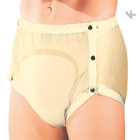 Der PVC-Slip für Damen und Herren ist geeignet bei schwerer Blasenschwäche. Er ist angenehm zu tragen durch einen breiten Schnitt und verstellbaren Bund- und Beingummis. Durch die nickelfreien stabilen Knöpfe und dem zusätzlichen Halt in der Taille kann die Inkontinenz-Vorlage problemlos, schnell und einfach gewechselt werden. Sie haben durch eine Folienstärke von 0,18 mm und durch genähte bzw. verschweißte Nähte besten Schutz vor dem Auslaufen von Flüssigkeit. Dieser Inkontinenz-Slip kann bei 95° gewaschen werden. Bitte keinen Weichspüler verwenden!