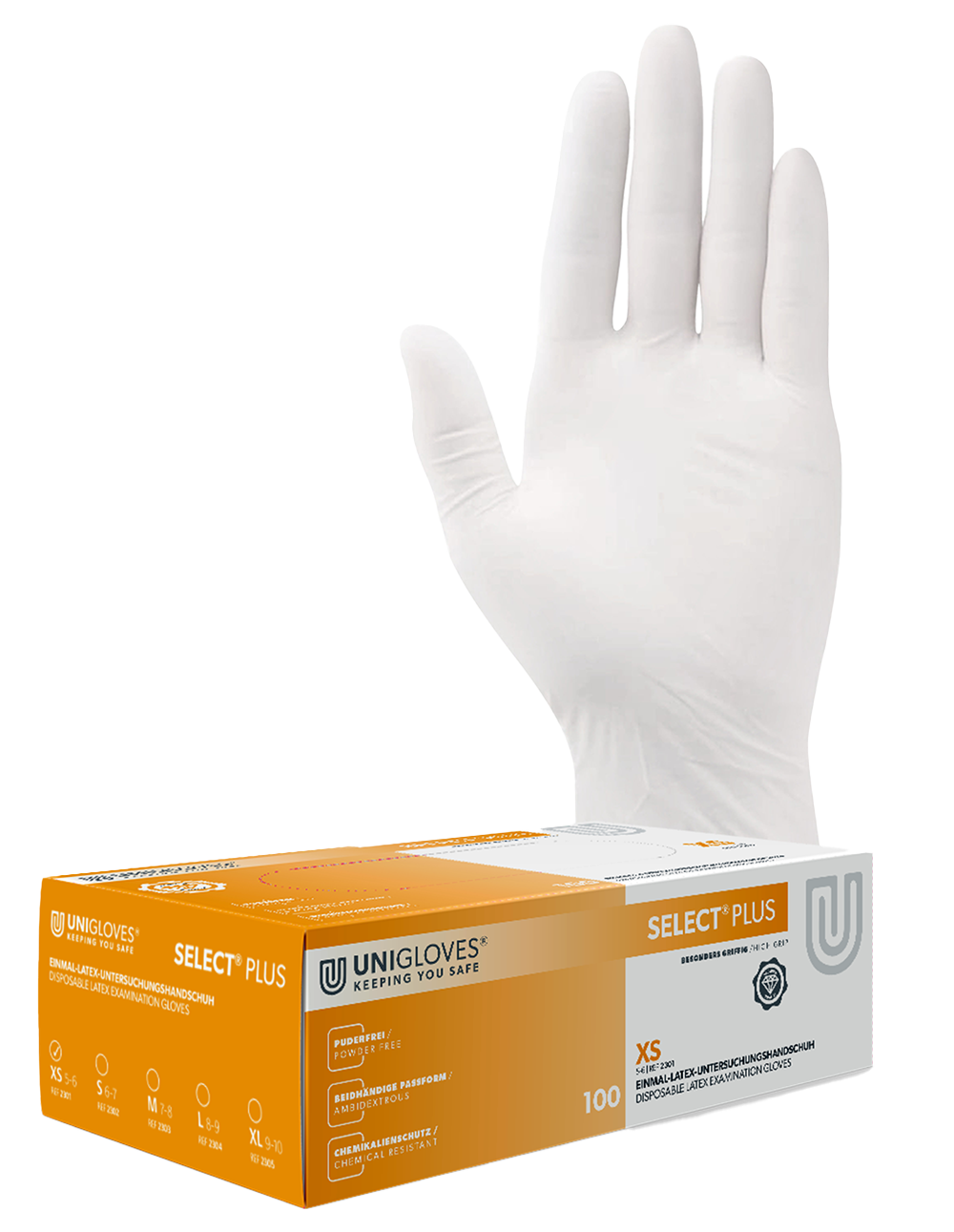 Unigloves Select Plus Latexhandschuhe – 100 Stück/Box, Größen XS–XL
