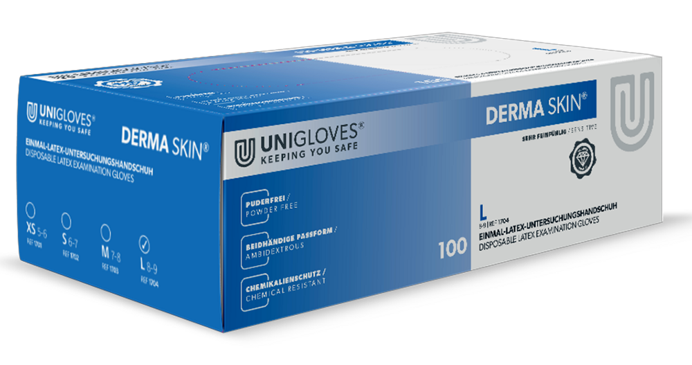 Unigloves Latexhandschuhe DERMA SKIN – 100 Stück/Box, Größen XS–L